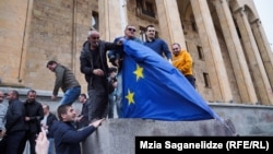 Прокремлевские радикалы сорвали и сожгли флаги ЕС у парламента Грузии