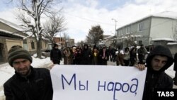 Жанна Тарханова: Я на Театральной площади. Здесь находится около двух тысяч сторонников Аллы Джиоевой, которые собрались сегодня к трем часам дня. Прямо напротив нас, в тридцати шагах от меня, сотрудники югоосетинского СОБРа и ОМОНа, которые взяли в оцепление комплекс правительственных зданий. Но никакой напряженной обстановки сегодня нет. То есть сегодня не слышны были какие-то агрессивные лозунги, речевки. Народ сейчас очень доброжелательно настроен, потому что к этому времени уже стали известны результаты общения Аллы Джиоевой и ее сторонников с представителем кремлевской администрации Винокуровым.