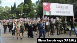 Сегодня в столице Абхазии прошла акция «Бессмертный полк». На улицы города вышли тысячи людей с портретами погибших во время Отечественной войны народа Абхазии 1992-1993 годов.