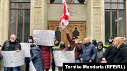 Вооруженная дымовыми шашками, свистками и баннерами с протестными надписями, немногочисленная группа активистов шумно выражала свое недовольство, считая суровый приговор Гахеладзе результатом политики «Грузинской мечты» по налаживанию отношений с Россией без того, чтобы ее раздражать. Один из лидеров движения «Позор» Гига Макарашвили возмущался: