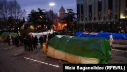 Акция протеста грузинской оппозиции в центре Тбилиси завершилась. Активисты разбили 11 палаток у здания парламента и собираются провести там ночь.