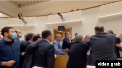 Не обошлось без брани и драки между оппозиционерами и представителями партии власти. В итоге охране наконец-то удалось разнять депутатов и освободить трибуну, выдворив часть оппозиции из зала заседания. Этим крайне недовольна была одна из лидеров «Нацдвижения» Тинатин Бокучава: