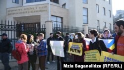 «Вместе против Путина», «Я против войны», «Грузия и Украина станут членами НАТО», «Две нации – один выбор» – написано на плакатах, растянутых в Тбилиси перед зданием посольства Украины. Организаторы акции называют ее фактически спонтанной. Выразить поддержку Украине сегодня вместе с гражданами Грузии собрались также российские и украинские граждане. Среди них – Алена Зайцева: