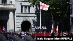 Исполнение государственного гимна детской капеллой, что было новшеством на главном мероприятии ко Дню независимости, усилило трепетные чувства у тех, кто пришел сегодня на площадь Свободы в центре Тбилиси. Везде реяли флаги Грузии и ЕС, еще больше настраивая на позитив в ожидании ответа из Брюсселя по поводу получения статуса кандидата Грузии на членство в ЕС. В Тбилиси постарались, чтобы в этот день все выглядело истинно по-европейски – впервые прозвучал на праздничном мероприятии, на котором президент традиционно принимает присягу новобранцев, и гимн Евросоюза.