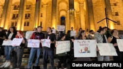 У здания парламента Грузии проходит митинг «Защити свободу выражения» против ограничения свободы выражения мнений.