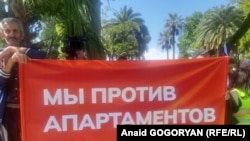 Государственные и российские информационные ресурсы, как и власть, игнорируют данную тему, несмотря на то что на этой неделе на сухумской набережной общественные активисты начали очередную протестную акцию против рассмотрения президентского проекта закона об апартаментах. Активисты собирают подписи людей, которые разделяют их позицию. Акция проводится у памятной доски абхазской поэтессе Саиде Делба, погибшей во время грузино-абхазской войны. Лозунгами к акции стали стихи Делба и цитаты первого президента Владислава Ардзинба. К активистам периодически присоединяются туристы, гости столицы, россияне, которые поддерживают абхазский протест против застройки страны многоэтажками и апартаментами.