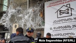 На улице Кекелидзе в Тбилиси Национальное бюро исполнения выселило семью Марины Хатиашвили, которая утверждает, что взяла ипотеку и потеряла квартиру в 2018 году, став жертвой «ипотечного мошенничества». У квартиры есть новый владелец, который приобрел ее, по информации грузинской службы Радио Свобода, за 40 тысяч лари.