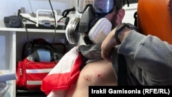 Из внутреннего двора парламента в сторону участников акции на улице 9 апреля направили струю воды и использовали перцовый спрей.