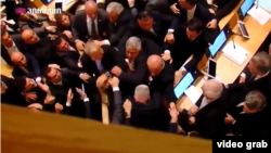 Но активнее всех был прославившийся обсценной лексикой в соцсетях Дмитрий Самхарадзе, который с места громко и нецензурно комментировал выступления оппозиционеров и чаще других вступал в потасовки. Все это, по словам представителя оппозиции Хатии Деканоидзе, очень точно отражает лицо власти: