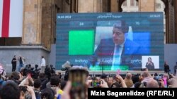 «Спасибо, браво! Вот, пожалуйста. Это путь предателей, дошедших до уровня дикости. Потому что единая и сильная Грузия никогда не будет поставлена на колени перед злым человеком, каким бы богатым он ни был. Сегодня весь цивилизованный мир смотрит на грузинскую молодежь и ставит их в пример молодежи своей страны. Вы – союз лиц без гражданства, вставших на путь предательства. 26 октября грузинский народ вынесет вам окончательный вердикт. В истории Грузии имя грузинской молодежи будет написано золотыми буквами, а ваше имя будет написано черными буквами. Вы будете в списке предателей, по которому в учебниках истории будут учить, какими не надо быть».