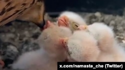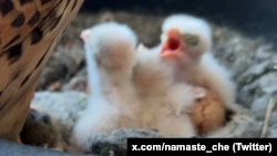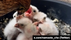 Пользователи твиттера и телеграма следят за буднями соколиной семьи, поселившейся на балконе в Тбилиси.
