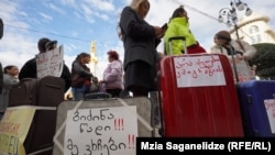 Участники женского марша устроят шествие к бизнес-центру почетного основателя «Грузинской мечты» Бидзины Иванишвили. «Бидзина, уходи! Я остаюсь!» - участницы женского марша пришли на акцию с чемоданами, заявляя, что фальсификация выборов приведет, в частности, к усилению миграции из Грузии.