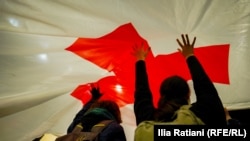 Позднее участники акции вернулись на проспект Руставели по улице Леонидзе. Полиция вновь не позволила им выйти на проезжую часть.