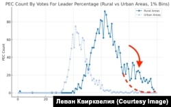 – С вашего позволения я перейду к следующим графикам, которые привлекли внимание многих – это голосование в городе и в сельской местности. У вас там такие интересные точки, которые следуют за прямыми. Какова специфика здесь?
