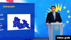 При этом политик представил карту Грузии, на которой регионы, в которых у «Грузинской мечты» были т. н. делегаты, были обозначены синим цветом.