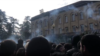 Ранее между участниками митинга и силовиками произошли столкновения, протестующие забросали правоохранителей яйцами и бутылками. До этого с помощью машины он снесли часть забора и проникли на территорию, прилегающую к зданию.